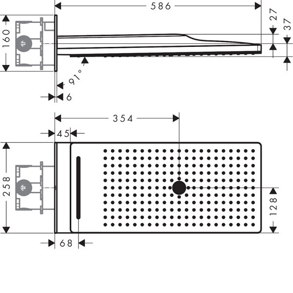 Верхний душ, Hansgrohe, Rainmaker Select, тип установки-настенный, ширина, мм-260, глубина, мм-586, высота, мм-160, форма-прямоугольная, количество режимов-3, тип струи-Rain, Rainflow Waterfall, Mono, цвет-белый/хром Верхний душ, Hansgrohe, Rainmaker Select, шгв 260*586*160, цвет-белый/хром