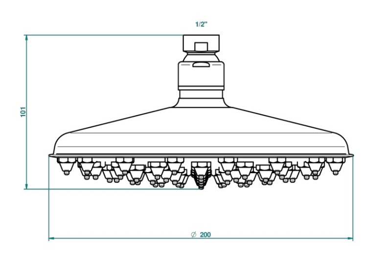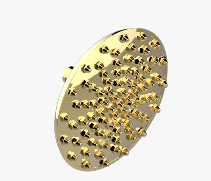 Верхний душ, THG, тип установки-настенный, потолочный, размер душевого диска, мм-200*200, форма-круглая, с 83 съёмными форсунками с защитой от жёсткой воды, шаровое шарнирное соединение 1/2", держатель-необходимо заказать, цвет-золотистый PVD Верхний душ, THG, 200*200, цвет-золотистый PVD