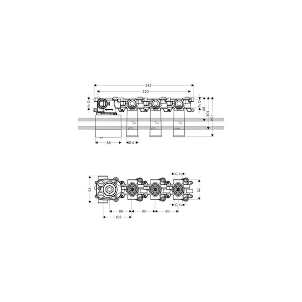 Внутрення часть, Axor, Axor ShowerSolutions, назначение-для модуля термостата, стандарт подвода воды-3/4", расход воды 59 л/мин, возможно одновременное включение 3 потребителей, подсоединение с левой или с правой стороны, горизонтальный или вертикальный монтаж, звукоизолирующий монтаж, цвет хром Внутренняя часть, Axor, Axor ShowerSolutions для термостата