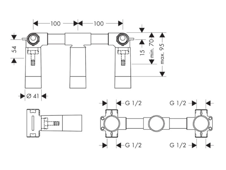 Внутренняя часть, Axor, назначение-смеситель для раковины, стандарт подвода воды-1/2", не окрашен, подходит для всех смесителей на 3 отверстия для настенного монтажа, соединение с верхней или с нижней стороны Внутренняя часть, Axor, назначение-смеситель для раковины, не окрашен