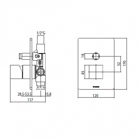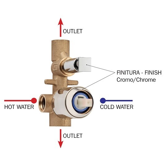 Внутренняя часть, Bossini, Oki/Cube/Liberty, назначение-смеситель для душа механический встраиваемый с девиатором 2 потребителя, стандарт подвода воды-1/2", латунь Внутрення часть, Bossini, Oki/Cube/Liberty, назначение-смеситель для душа механический встраиваемый с девиатором 2 потребителя, латунь
