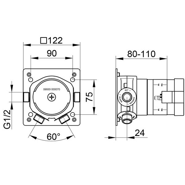 Внутрення часть, Keuco, назначение-для термостата, стандарт подвода воды-1/2" Внутрення часть, Keuco, назначение-для термостата