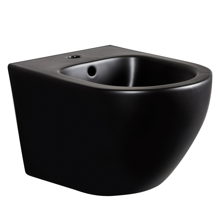 Биде, Splendy, Light, тип установки-подвесной, ширина, мм-370, глубина, мм-525, высота, мм-320, форма чаши-овальная, отверстия для смесителя-1, материал-керамика, цвет-черный матовый Биде, Splendy, Light, подвесной, шгв 370*525*320, цвет-черный матовый
