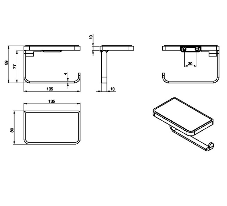 Бумагодержатель, Splendy, Inspiration S, с полочкой, без крышки, ширина, мм-135, глубина, мм-89, высота, мм-80, тип установки-настенный, цвет-хром Бумагодержатель, Splendy, Inspiration S, шгв 135*89*80, с полочкой, цвет-хром