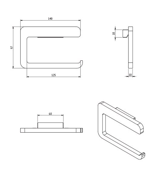 Бумагодержатель, Splendy, Inspiration, без крышки, ширина, мм-140, глубина, мм-18, высота, мм-97, тип установки-настенный, цвет-черный матовый Бумагодержатель, Splendy, Inspiration, шгв 140*18*97, цвет-черный матовый