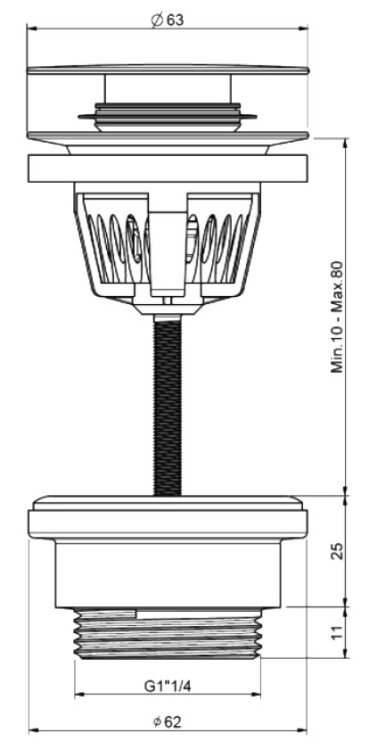 Донный клапан, Splendy, для раковин, универсальный, нажимной Click Clack, 1 1/4", форма крышки-круглая, диаметр крышки, мм-63, материал картриджа-пластик, материал крышки-металл, цвет-никель брашированный Донный клапан, Splendy, для раковин, универсальный, Click Clack, 1 1/4", цвет-никель брашированный