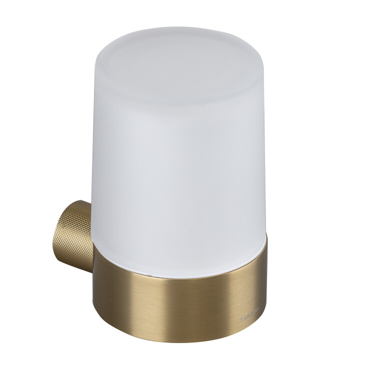 Дозатор для жидкого мыла, Splendy, Passion, механический (нажимной снизу), ширина, мм-77.5, глубина, мм-98, высота, мм-126, ёмкость(мл)-150, тип установки-настенный, материал колбы-стекло сатинированное, держатель-в комплекте, материал дозатора/держателя-металл, цвет дозатора-золото матовое (брашированное) Дозатор для жидкого мыла, Splendy, Passion, нажимной снизу, шгв 77.5*98*126, цвет дозатора-золото матовое (брашированное)