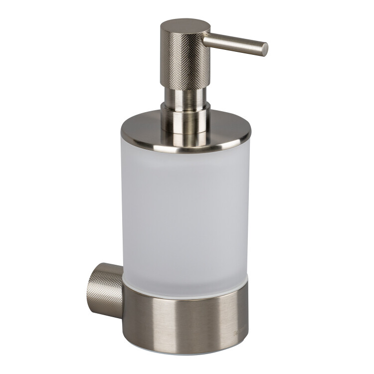 Дозатор для жидкого мыла, Splendy, Passion, механический (нажимной сверху), ширина, мм-73, глубина, мм-106, высота, мм-181, ёмкость(мл)-250, тип установки-настенный, материал колбы-стекло сатинированное, держатель-в комплекте, материал дозатора/держателя-металл, цвет дозатора-никель брашированный Дозатор для жидкого мыла, Splendy, Passion, нажимной сверху, шгв 73*106*181, цвет дозатора-никель брашированный