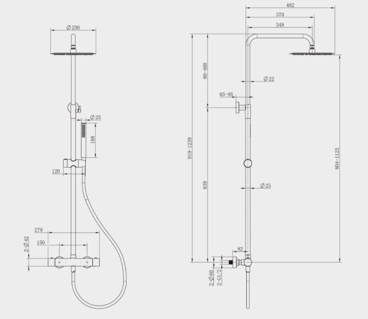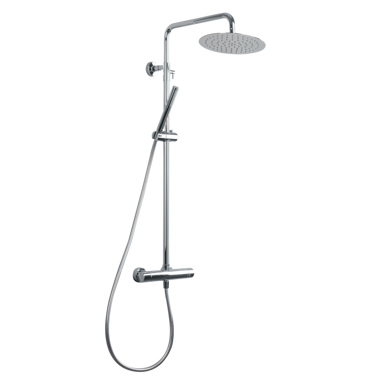 Душевая стойка, Splendy, Relax P, смеситель-в комплекте, тип открывания воды-вентильный, тип регулирования воды-термостатический картридж, верхний душ-есть, форма верхнего душа-круглая, размер верхнего душа,мм-250*250, держатель верхнего душа-есть, вынос, мм-370, количество режимов верхнего душа-1, телескопическая штанга с регулируемой высотой из нержавеющей стали, размер штанги, мм-919-1239, держатель ручного душа-есть, ручной душ-в комплекте, материал ручного душа-латунь, количество режимов ручного душа-1, шланг-есть, размер шланга, мм-1500, материал шланга-ПВХ , цвет-хром Душевая стойка, Splendy, Relax P, цвет-хром