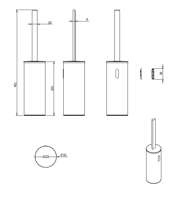Ёршик, Splendy, Inspiration R, с крышкой, ширина, мм-82, глубина, мм-82, высота, мм-402, напольный/настенный, материал колбы-металл с пластиковой вставкой, материал держателя-металл, цвет-хром Ёршик, Splendy, Inspiration R, шгв 82*82*402, цвет-хром