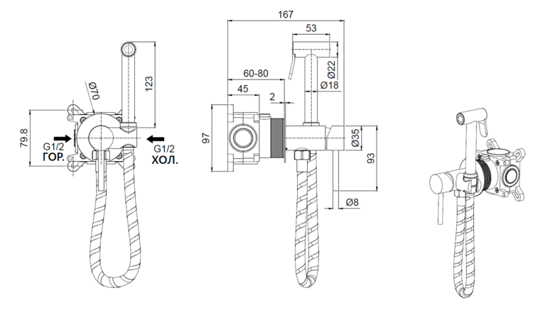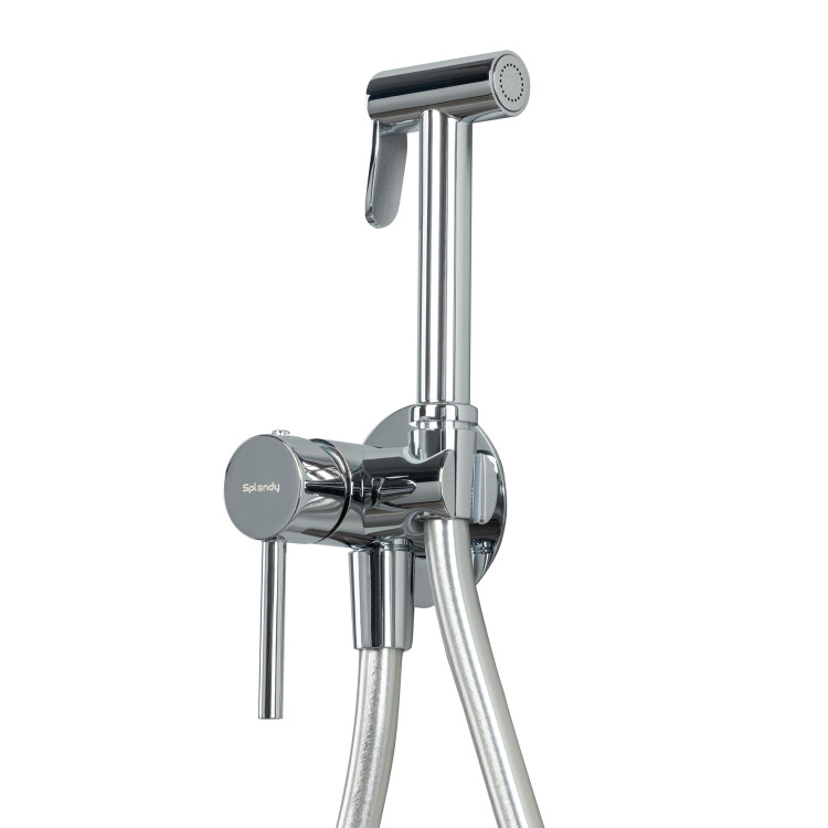 Гигиенический душ, Splendy, Joy, смеситель-в комплекте, тип открывания воды-однорычажный, тип регулирования воды-керамический картридж, монтаж-настенный встраиваемый, внутренняя часть-в комплекте, шланг из ПВХ-есть, длина шланга, мм-1200, шланговое подключение с держателем-в комплекте, материал-латунь, цвет-хром Гигиенический душ, Splendy, Joy, цвет-хром