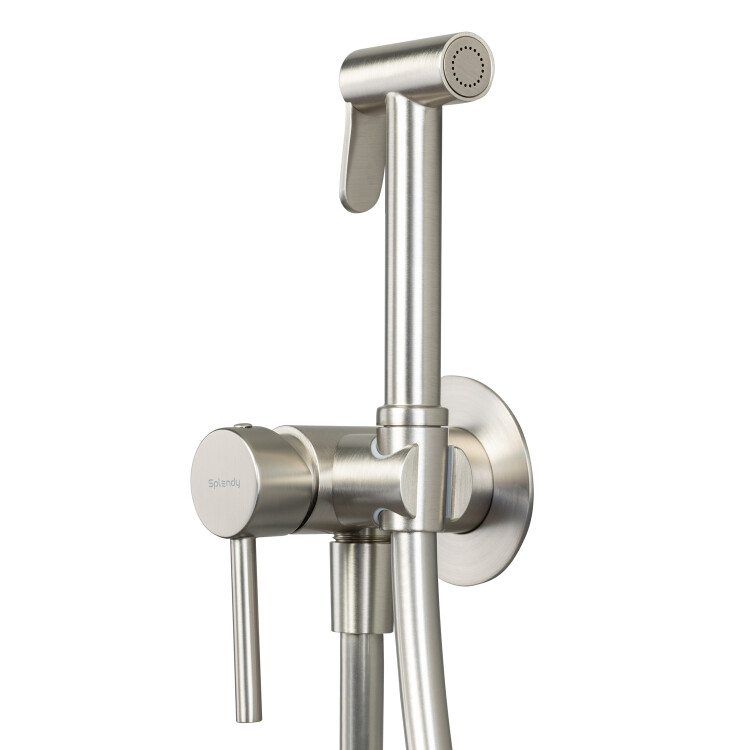 Гигиенический душ, Splendy, Joy, смеситель-в комплекте, тип открывания воды-однорычажный, тип регулирования воды-керамический картридж, монтаж-настенный встраиваемый, внутренняя часть-в комплекте, шланг из ПВХ-есть, длина шланга, мм-1200, шланговое подключение с держателем-в комплекте, материал-латунь, цвет-никель брашированный Гигиенический душ, Splendy, Joy, цвет-никель брашированный