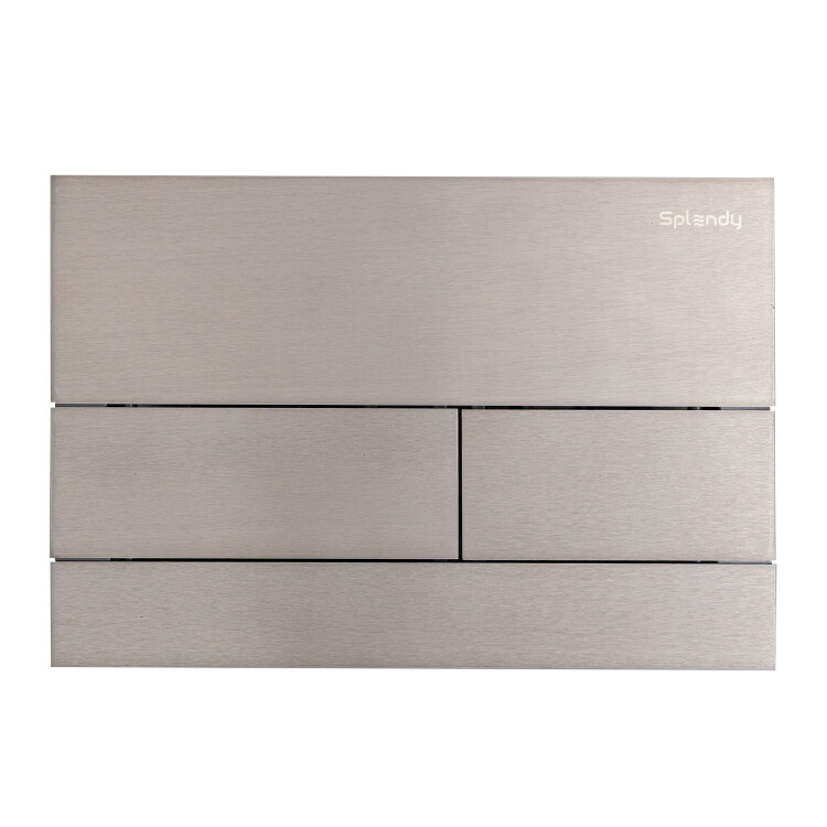Клавиша смыва, Splendy, Stable Mood, с прямоугольными кнопками, для унитаза, ширина, мм-220, глубина, мм-5, высота, мм-150, тип смыва-двойной, тип управления-механический, материал-нержавеющая сталь, в комплекте-толкатели и крепежные элементы, цвет-сталь брашированная Клавиша смыва, Splendy, Stable Mood, для унитаза, шгв 220*5*150, с прямоугольными кнопками, цвет-сталь брашированная