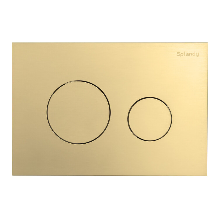 Клавиша смыва, Splendy, Stable Rest, с круглыми кнопками, для унитаза, ширина, мм-220, глубина, мм-5, высота, мм-150, тип смыва-двойной, тип управления-механический, материал-пластик, с защитой от отпечатков пальцев, в комплекте-толкатели и крепежные элементы, цвет-золото матовое (брашированное) Клавиша смыва, Splendy, Stable Rest, для унитаза, шгв 220*5*150, с круглыми кнопками, цвет-золото матовое (брашированное)