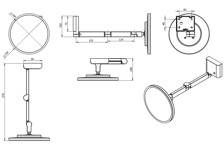 Косметическое зеркало, Splendy, Mirror R, круглое, размер зеркала (ш x в), мм-200*200, тип установки-настенный, с подсветкой, тип освещения-светодиодная подсветка (LED), тип включения-сенсорный, увеличение, х-5 раз, держатель-поворотный, плоский, цвет-хром Косметическое зеркало, Splendy, Delight R, с подсветкой, цвет-хром
