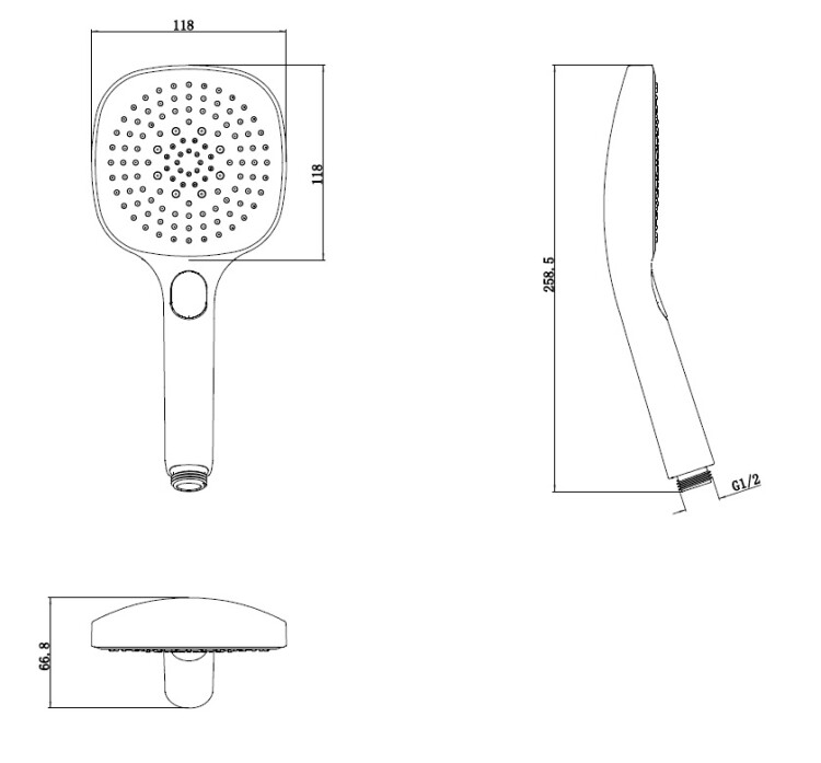Ручной душ, Splendy, Sense S, размер душевого диска, мм-120, форма-квадратная, количество режимов-3, материал-ABS пластик, цвет-черный матовый Ручной душ, Splendy, Sense S, 120, цвет-черный матовый