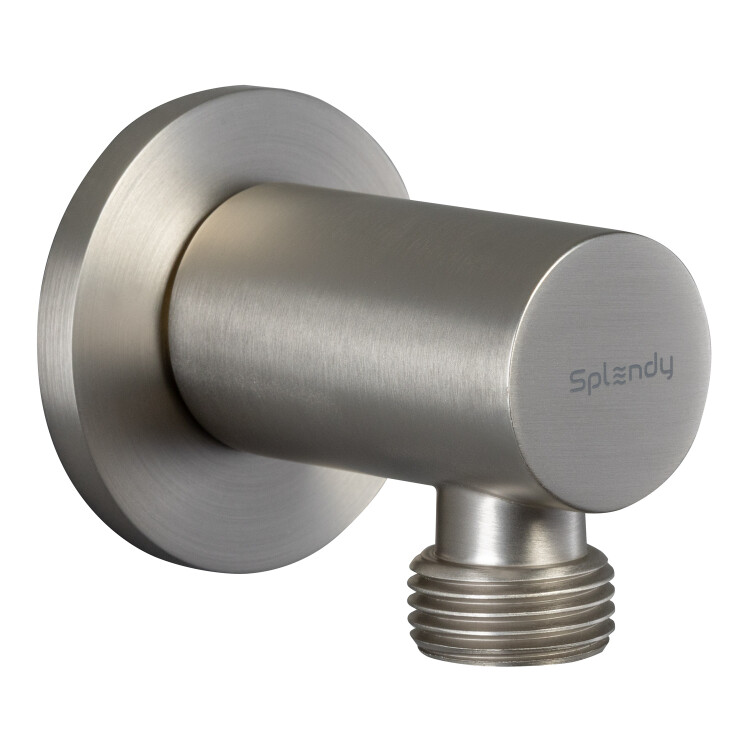 Шланговое подсоединение, Splendy, круглый отражатель, держатель для душа-отсутствует, стандарт подвода воды-1/2", материал-латунь, цвет-никель брашированный Шланговое подсоединение, Splendy, круглый отражатель, без держателя, цвет-никель брашированный
