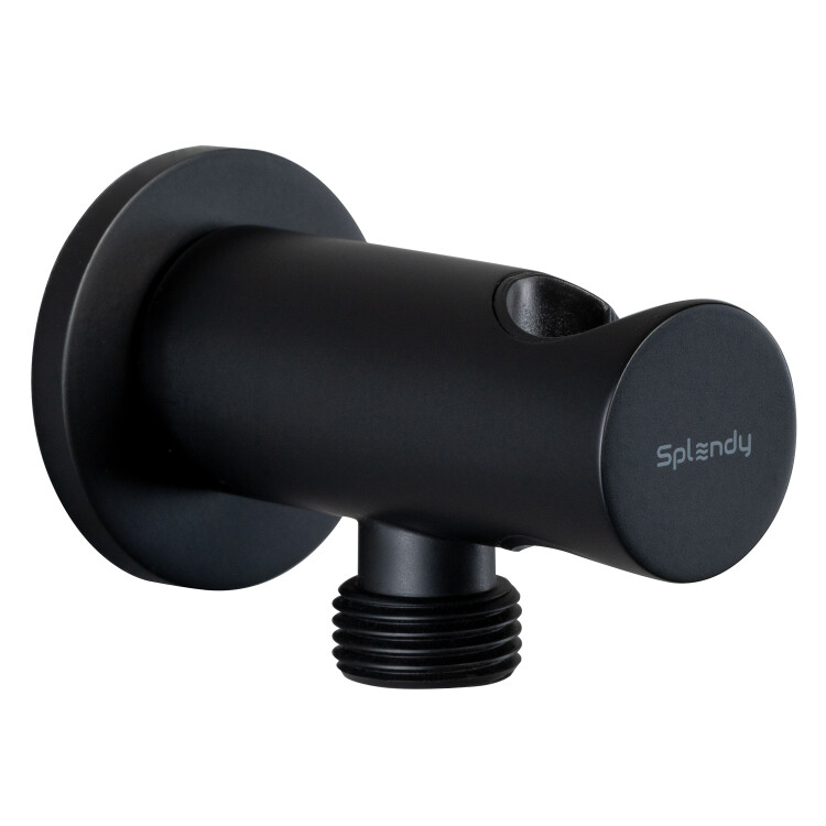 Шланговое подсоединение, Splendy, круглый отражатель, держатель для душа-в комплекте, стандарт подвода воды-1/2", материал-латунь, цвет-черный матовый Шланговое подсоединение, Splendy, круглый отражатель, с держателем, цвет-черный матовый