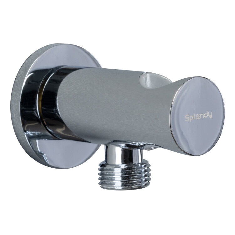 Шланговое подсоединение, Splendy, круглый отражатель, держатель для душа-в комплекте, стандарт подвода воды-1/2", материал-латунь, цвет-хром Шланговое подсоединение, Splendy, круглый отражатель, с держателем, цвет-хром