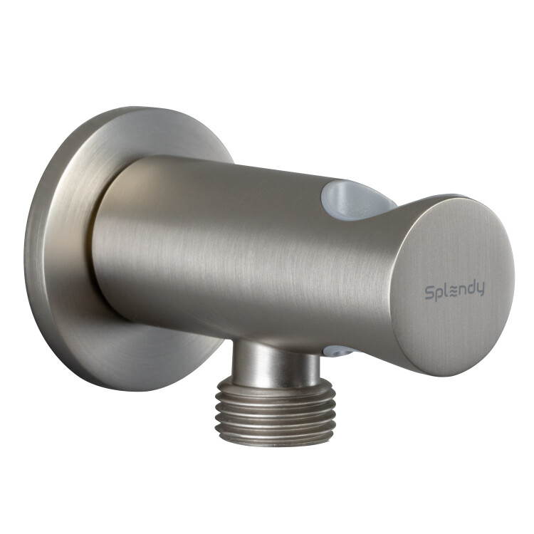 Шланговое подсоединение, Splendy, круглый отражатель, держатель для душа-в комплекте, стандарт подвода воды-1/2", материал-латунь, цвет-никель брашированный Шланговое подсоединение, Splendy, круглый отражатель, с держателем, цвет-никель брашированный
