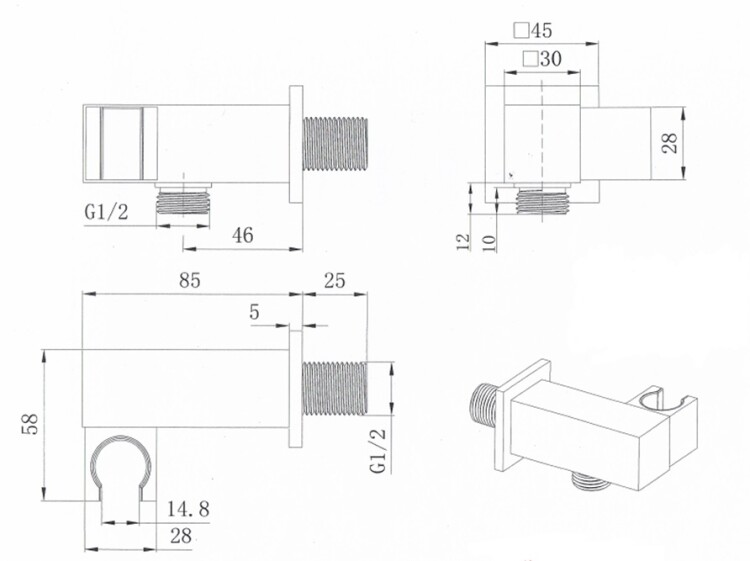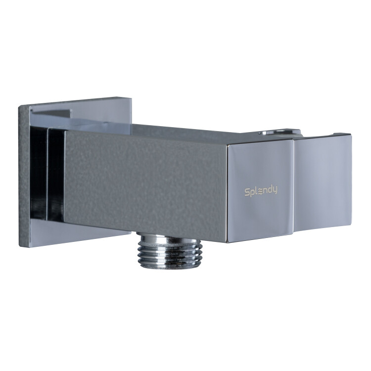 Шланговое подсоединение, Splendy, квадратный отражатель, держатель для душа-в комплекте, стандарт подвода воды-1/2", материал-латунь, цвет-хром Шланговое подсоединение, Splendy, квадратный отражатель, с держателем, цвет-хром