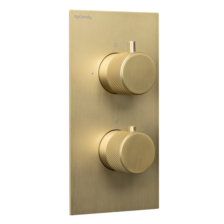 Смеситель для душа, Splendy, Passion, на 2 потребителя, тип открывания воды-вентильный, тип регулирования воды-термостатический картридж, монтаж-настенный встраиваемый, отверстия для монтажа-1, с переключателем, внутренняя часть-в комплекте, цвет-золото матовое (брашированное) Смеситель для душа, Splendy, Passion, на 2 потребителя, цвет-золото матовое (брашированное)