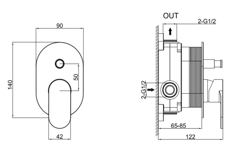 Смеситель для душа, Splendy, Rest, на 2 потребителя, тип открывания воды-однорычажный, тип регулирования воды-керамический картридж, монтаж-настенный встраиваемый, отверстия для монтажа-1, с переключателем, внутренняя часть-в комплекте, цвет-черный матовый Смеситель для душа, Splendy, Rest, на 2 потребителя, цвет-черный матовый