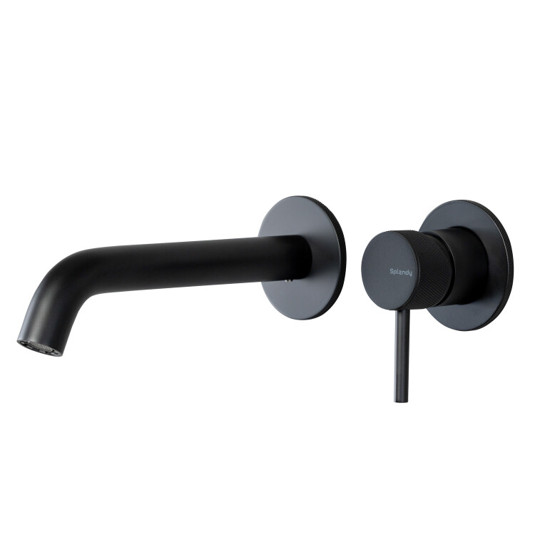 Смеситель для раковины, Splendy, Passion, тип открывания воды-однорычажный, тип регулирования воды-керамический картридж, монтаж-настенный встраиваемый, отверстия для монтажа-2, высота, мм-101, вынос излива, мм-193, тип излива-неподвижный, донный клапан-отсутствует, тип подводки-жесткая, стандарт подвода воды-1/2", внутренняя часть-в комплекте, цвет-черный матовый Смеситель для раковины, Splendy, Passion, настенный встраиваемый, цвет-черный матовый