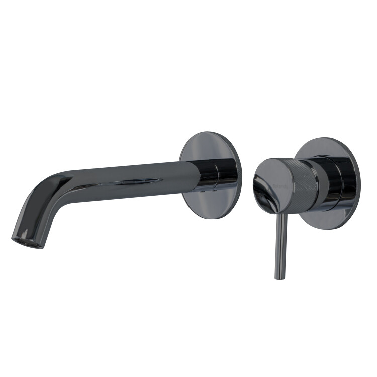 Смеситель для раковины, Splendy, Passion, тип открывания воды-однорычажный, тип регулирования воды-керамический картридж, монтаж-настенный встраиваемый, отверстия для монтажа-2, высота, мм-101, вынос излива, мм-193, тип излива-неподвижный, донный клапан-отсутствует, тип подводки-жесткая, стандарт подвода воды-1/2", внутренняя часть-в комплекте, цвет-хром черный Смеситель для раковины, Splendy, Passion, настенный встраиваемый, цвет-хром черный