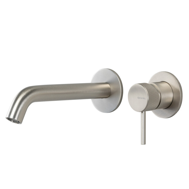 Смеситель для раковины, Splendy, Passion, тип открывания воды-однорычажный, тип регулирования воды-керамический картридж, монтаж-настенный встраиваемый, отверстия для монтажа-2, высота, мм-101, вынос излива, мм-193, тип излива-неподвижный, донный клапан-отсутствует, тип подводки-жесткая, стандарт подвода воды-1/2", внутренняя часть-в комплекте, цвет-никель брашированный Смеситель для раковины, Splendy, Passion, настенный встраиваемый, цвет-никель брашированный