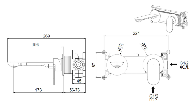 Смеситель для раковины, Splendy, Rest, тип открывания воды-однорычажный, тип регулирования воды-керамический картридж, монтаж-настенный встраиваемый, отверстия для монтажа-2, высота, мм-87.1, вынос излива, мм-170, тип излива-неподвижный, донный клапан-отсутствует, тип подводки-жесткая, стандарт подвода воды-1/2", внутренняя часть-в комплекте, цвет-черный матовый Смеситель для раковины, Splendy, Rest, цвет-черный матовый