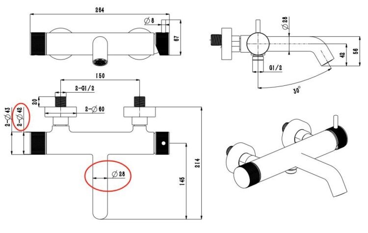 Смеситель для ванны, Splendy, Passion, на 2 потребителя, тип открывания воды-однорычажный, тип регулирования воды-термостатический картридж, монтаж-настенный, отверстия для монтажа-2, вынос излива, мм-193, тип излива-неподвижный, с переключателем ванна/душ, стандарт подключения эксцентриков-G 1/2", цвет-хром Смеситель для ванны, Splendy, Passion, на 2 потребителя, термостатический, цвет-хром
