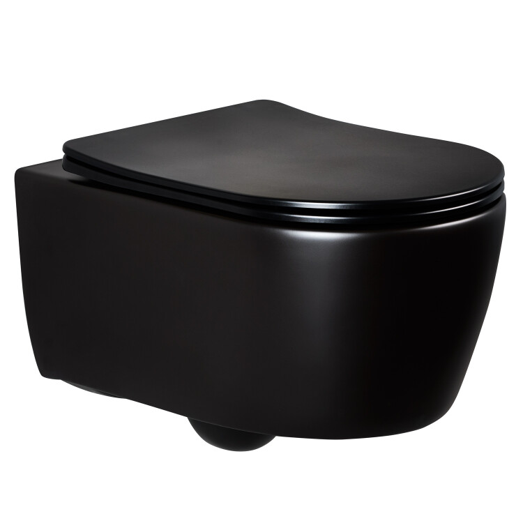 Унитаз, Splendy, Pride, безободковый (с открытым смывным краем), тип смыва-Tornado, тип установки-подвесной, ширина, мм-360, глубина, мм-525, высота, мм-340, форма чаши-овальная, выпуск-горизонтальный, материал-керамика, быстросъемное сиденье с плавным опусканием SoftClose-в комплекте, цвет-черный матовый Унитаз, Splendy, Pride, Tornado, подвесной, шгв 360*525*340, с сиденьем SoftClose, цвет-черный матовый