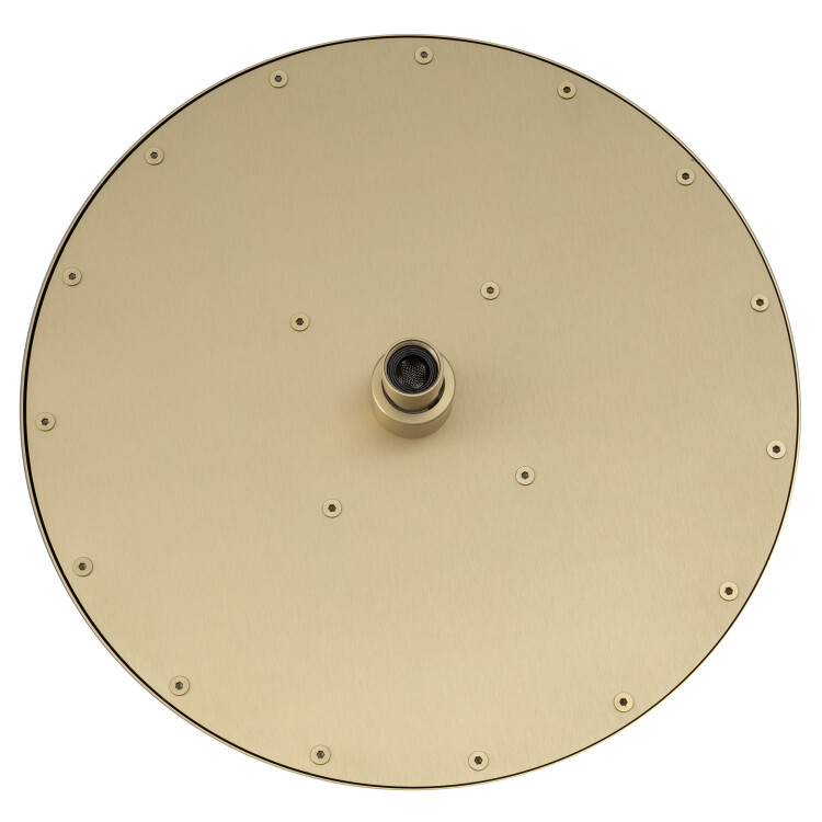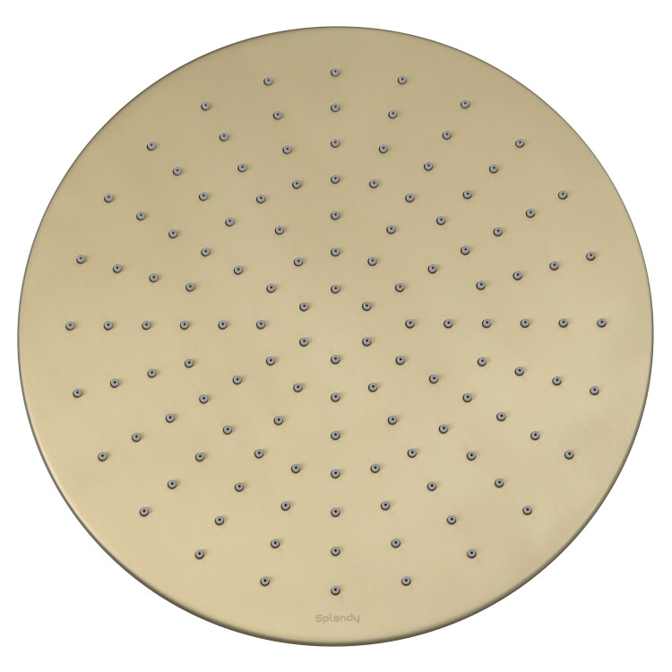 Верхний душ, Splendy, Feeling R, тип установки-настенный, потолочный, размер душевого диска, мм-300*300, форма-круглая, количество режимов-1, тип струи-дождь (Rain), держатель-необходимо заказать, материал-латунь, цвет-золото матовое (брашированное) Верхний душ, Splendy, Feeling R, 300*300, цвет-золото матовое (брашированное)