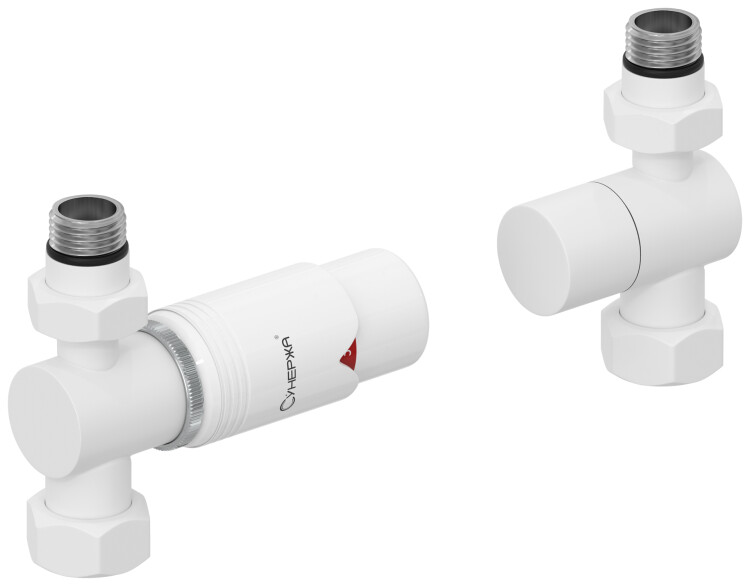 Терморегулятор, Сунержа, автоматический, G 1/2" НР х G 3/4" НГ, набор, подключение-прямое, материал-нержавеющая сталь, основной цвет-белый матовый, цвет термоголовки-белый Терморегулятор, Сунержа, автоматический, G 1/2" НР х G 3/4" НГ, набор, прямой, цвет-белый матовый/белый