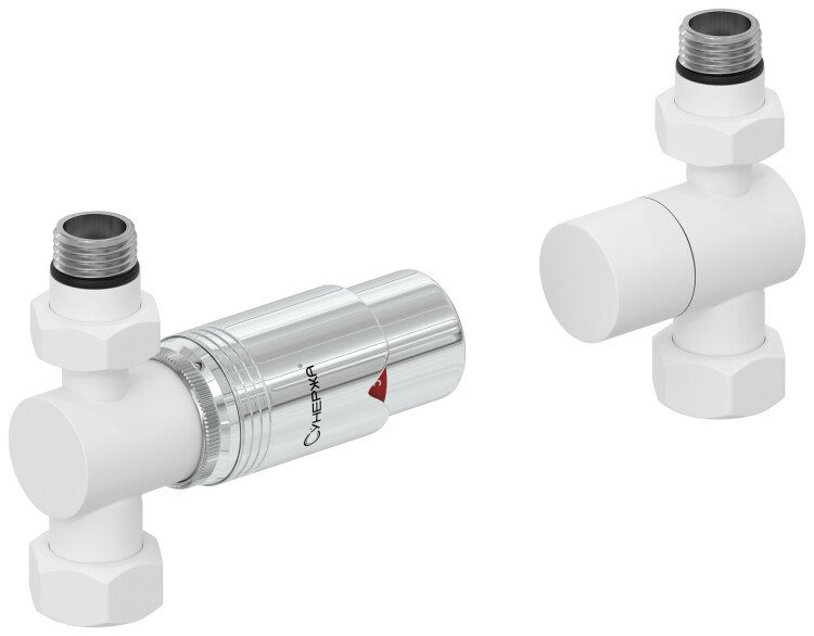 Терморегулятор, Сунержа, автоматический, G 1/2" НР х G 3/4" НГ, набор, подключение-прямое, материал-нержавеющая сталь, основной цвет-белый матовый, цвет термоголовки-хром Терморегулятор, Сунержа, автоматический, G 1/2" НР х G 3/4" НГ, набор, прямой, цвет-белый матовый/хром