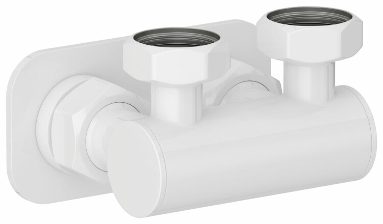 Модуль, Сунержа, угловой EU50, для отопительных приборов, ширина,мм-100, глубина,мм-74, высота,мм-65, присоединение-2 х НГ G 3/4" / 2 х НГ G 3/4", материал-нержавеющая сталь, цвет-белый Модуль, Сунержа, угловой EU50, для отопительных приборов, цвет-белый
