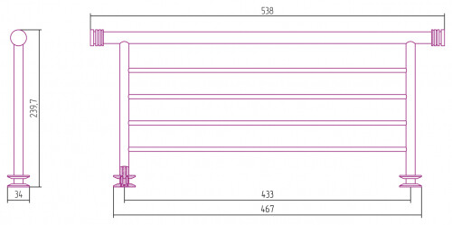Полка, Сунержа, прямая 4П, ширина, мм-470, назначение-для водяных и электрических, материал-нержавеющая сталь, цвет-сатин Полка, Сунержа, прямая 4П, ш 470, материал-нержавеющая сталь, цвет-сатин