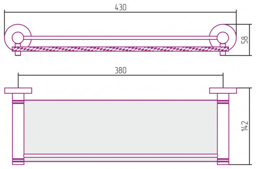 Полка, Сунержа, КАНЬОН, ширина, мм-430, глубина, мм-142, высота, мм-58, тип установки-настенный, материал-нержавеющая сталь/стекло, крепления в комплекте, с ограничителем, цвет-золото Полка, Сунержа, КАНЬОН, шгв 430*142*58, цвет-золото