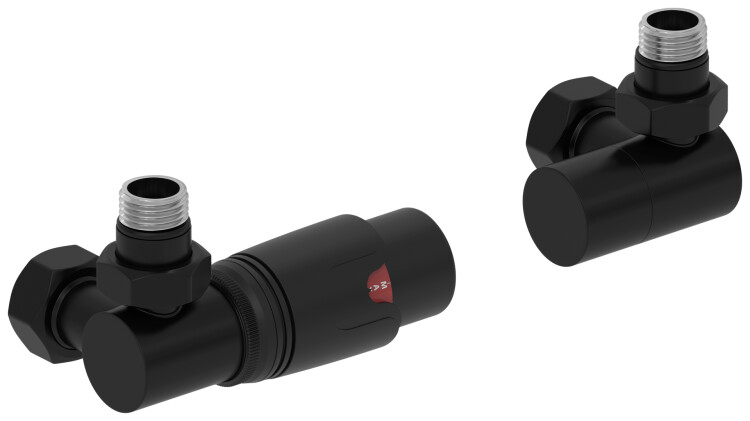 Терморегулятор, Сунержа, 3D, автоматический, G 1/2" НР х G 3/4" НГ, набор, левый, подключение-угловое, материал-нержавеющая сталь/пластик, основной цвет-чёрный матовый Терморегулятор, Сунержа, 3D, автоматический, G 1/2" НР х G 3/4" НГ, набор, левый, цвет-чёрный матовый