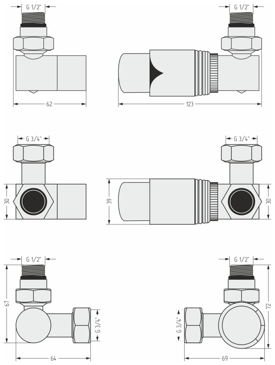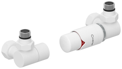 Автоматический терморегулятор, Сунержа, 3D, G 1/2" НР х G 3/4", набор, правый, подключение-угловое, материал-нержавеющая сталь, основной цвет-белый матовый, цвет термоголовки-белый Автоматический терморегулятор, Сунержа, 3D, G 1/2" НР х G 3/4", набор, правый, цвет-белый матовый/белый