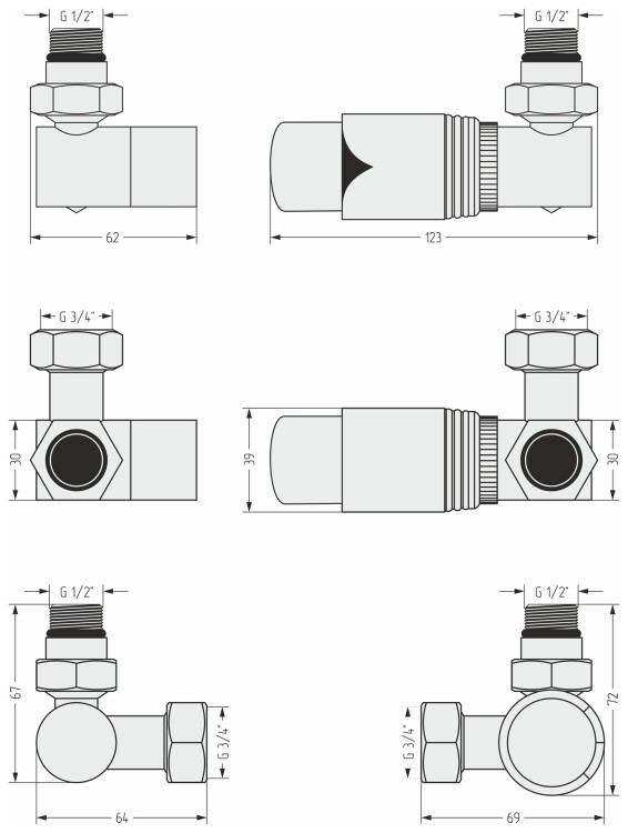 Терморегулятор, Сунержа, автоматический, 3D, G 1/2" НР х G 3/4", набор, правый, подключение-угловое, материал-нержавеющая сталь, основной цвет-белый матовый, цвет термоголовки-хром Терморегулятор, Сунержа, автоматический, 3D, G 1/2" НР х G 3/4",, набор, правый, цвет-белый матовый/хром