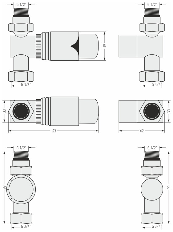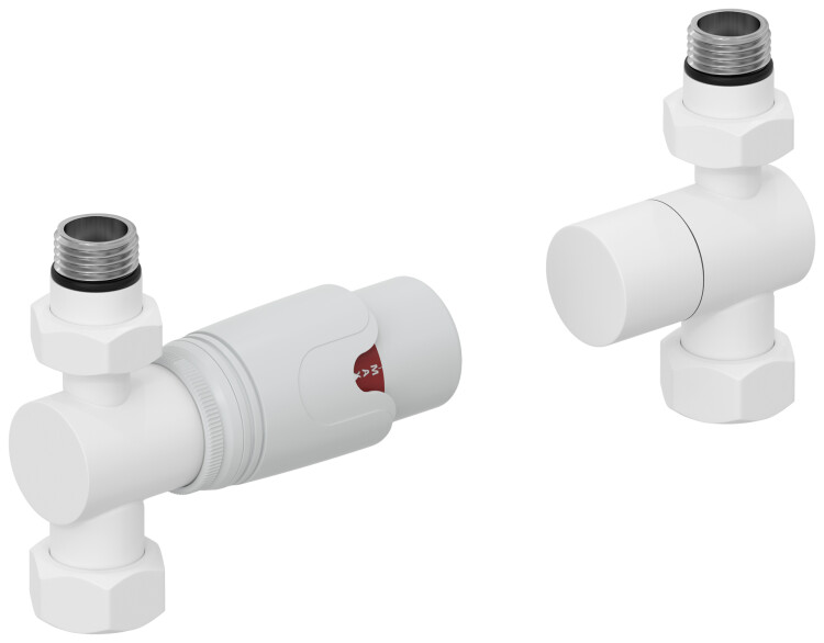 Терморегулятор, Сунержа, автоматический, G 1/2" НР х G 3/4" НГ, набор, для водяных полотенцесушителей, подключение-прямое, материал-нержавеющая сталь/пластик, цвет-белый матовый Терморегулятор, Сунержа, автоматический, G 1/2" НР х G 3/4" НГ, набор, прямой, цвет-белый матовый