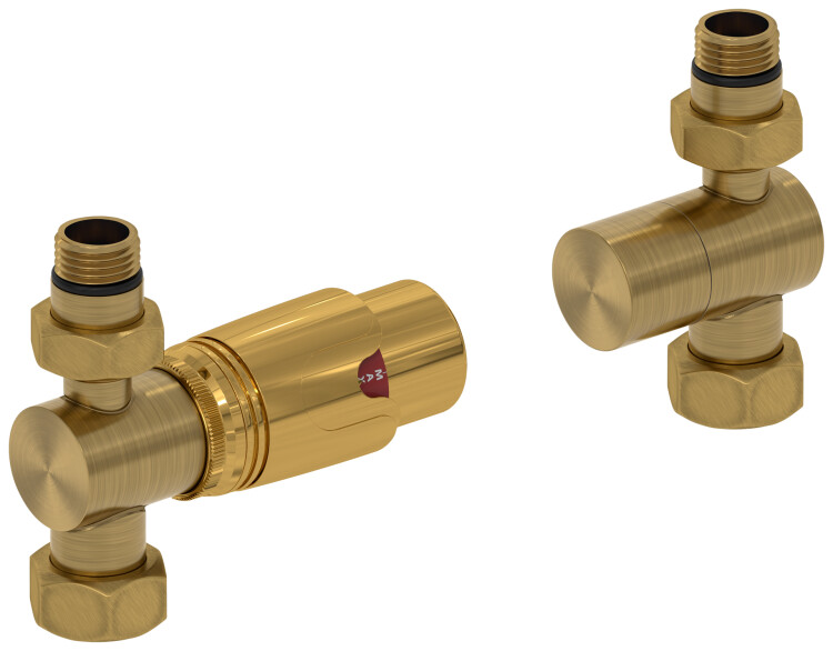 Терморегулятор, Сунержа, автоматический, G 1/2" НР х G 3/4" НГ, набор, для водяных полотенцесушителей, подключение-прямое, материал-нержавеющая сталь/пластик, цвет-латунь состаренная Терморегулятор, Сунержа, автоматический, G 1/2" НР х G 3/4" НГ, набор, прямой, цвет-латунь состаренная