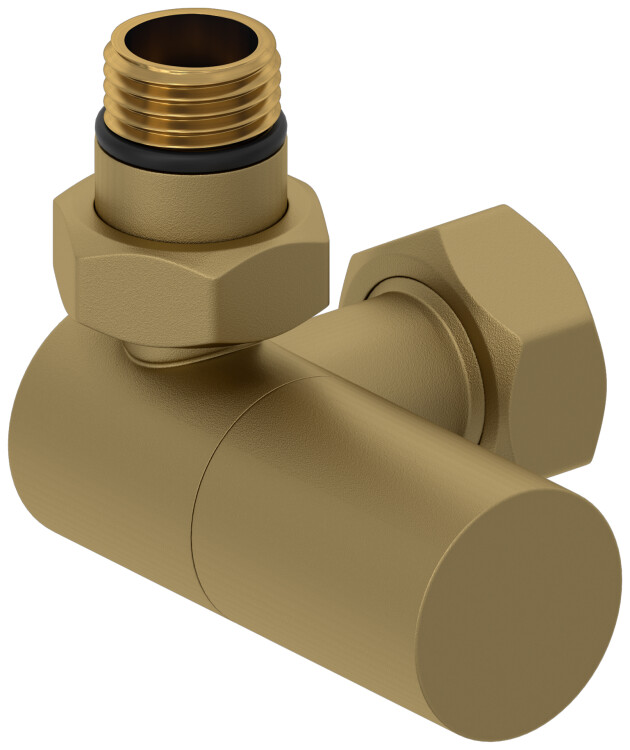 Вентиль, Сунержа, 3D, G 1/2" НР х G 3/4" НГ, для водяных полотенцесушителей, левый, цилиндр, материал-нержавеющая сталь, цвет-матовое золото Вентиль, Сунержа, 3D, G 1/2" НР х G 3/4" НГ, левый, цилиндр, цвет-матовое золото