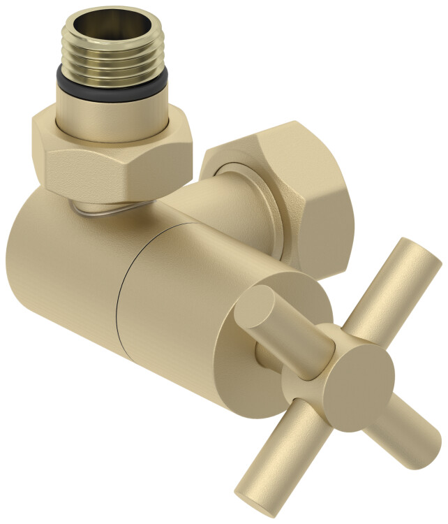 Вентиль, Сунержа, 3D, G 1/2" НР х G 3/4" НГ, левый, крест, материал-нержавеющая сталь, цвет-шампань матовая Вентиль, Сунержа, 3D, G 1/2" НР х G 3/4" НГ, левый, крест, цвет-шампань матовая