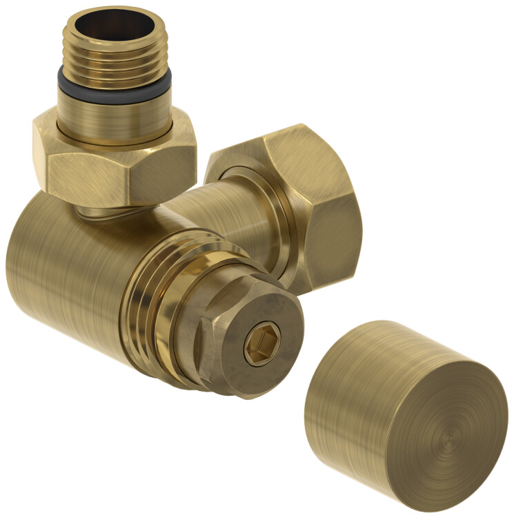Вентиль, Сунержа, 3D, G 1/2" НР х G 3/4" НГ, левый, под шестигранник, материал-нержавеющая сталь, цвет-латунь состаренная Вентиль, Сунержа, 3D, G 1/2" НР х G 3/4" НГ, левый, под шестигранник, цвет-латунь состаренная