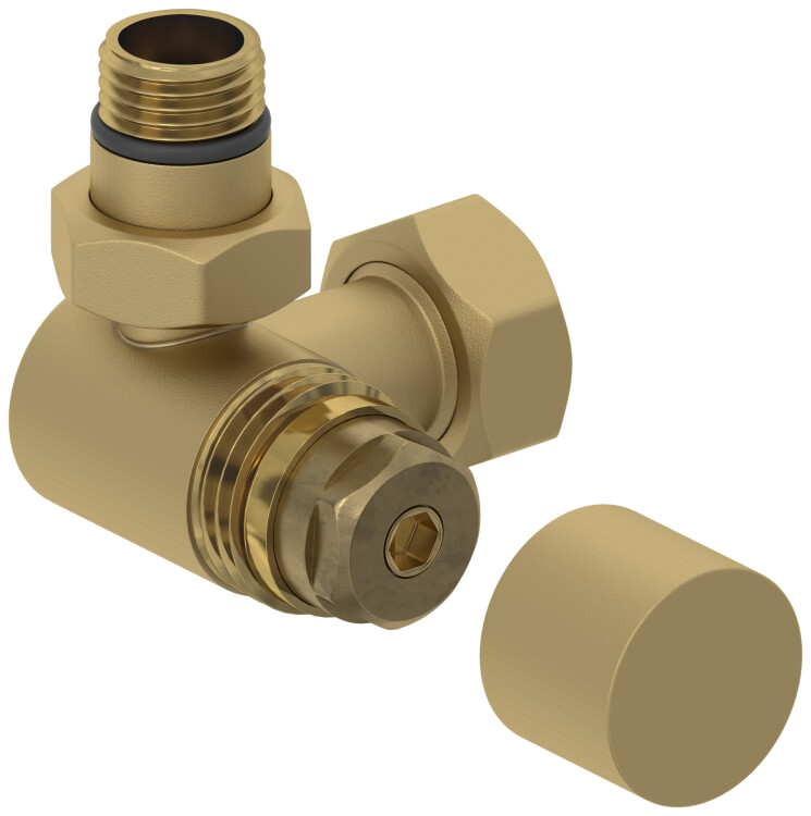 Вентиль, Сунержа, 3D, G 1/2" НР х G 3/4" НГ, левый, под шестигранник, материал-нержавеющая сталь, цвет-золото матовое Вентиль, Сунержа, 3D, G 1/2" НР х G 3/4" НГ, левый, под шестигранник, цвет-золото матовое