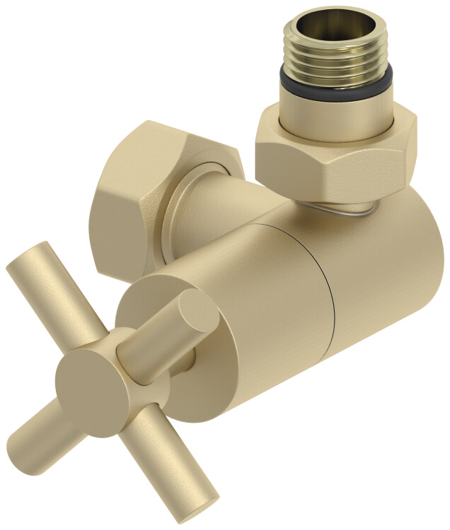 Вентиль, Сунержа, 3D, G 1/2" НР х G 3/4" НГ, правый, крест, материал-нержавеющая сталь, цвет-шампань матовая Вентиль, Сунержа, 3D, G 1/2" НР х G 3/4" НГ, правый, крест, цвет-шампань матовая