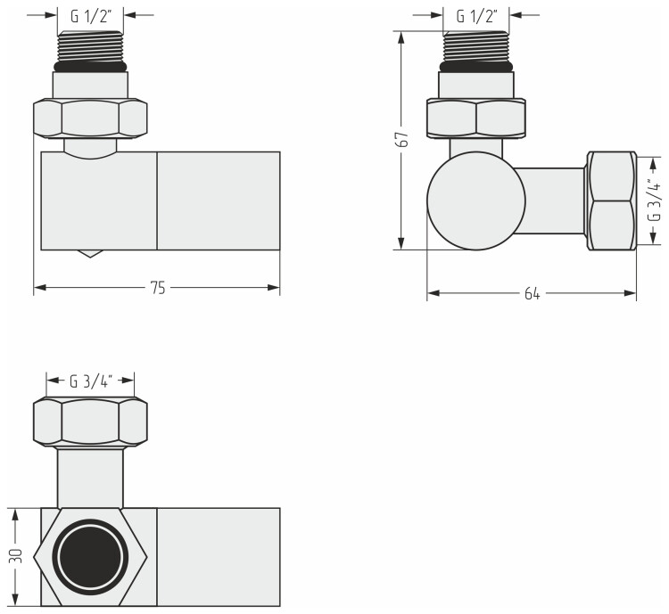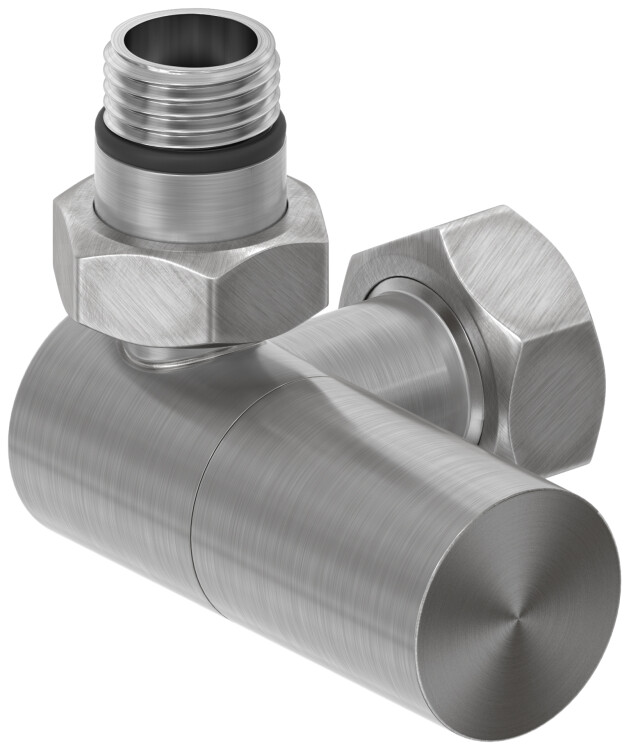 Вентиль, Сунержа, 3D, G 1/2" НР х G 3/4" НГ, для водяных полотенцесушителей, левый, цилиндр, материал-нержавеющая сталь, цвет-сатин Вентиль, Сунержа, 3D, G 1/2" НР х G 3/4" НГ, левый, цилиндр, цвет-сатин